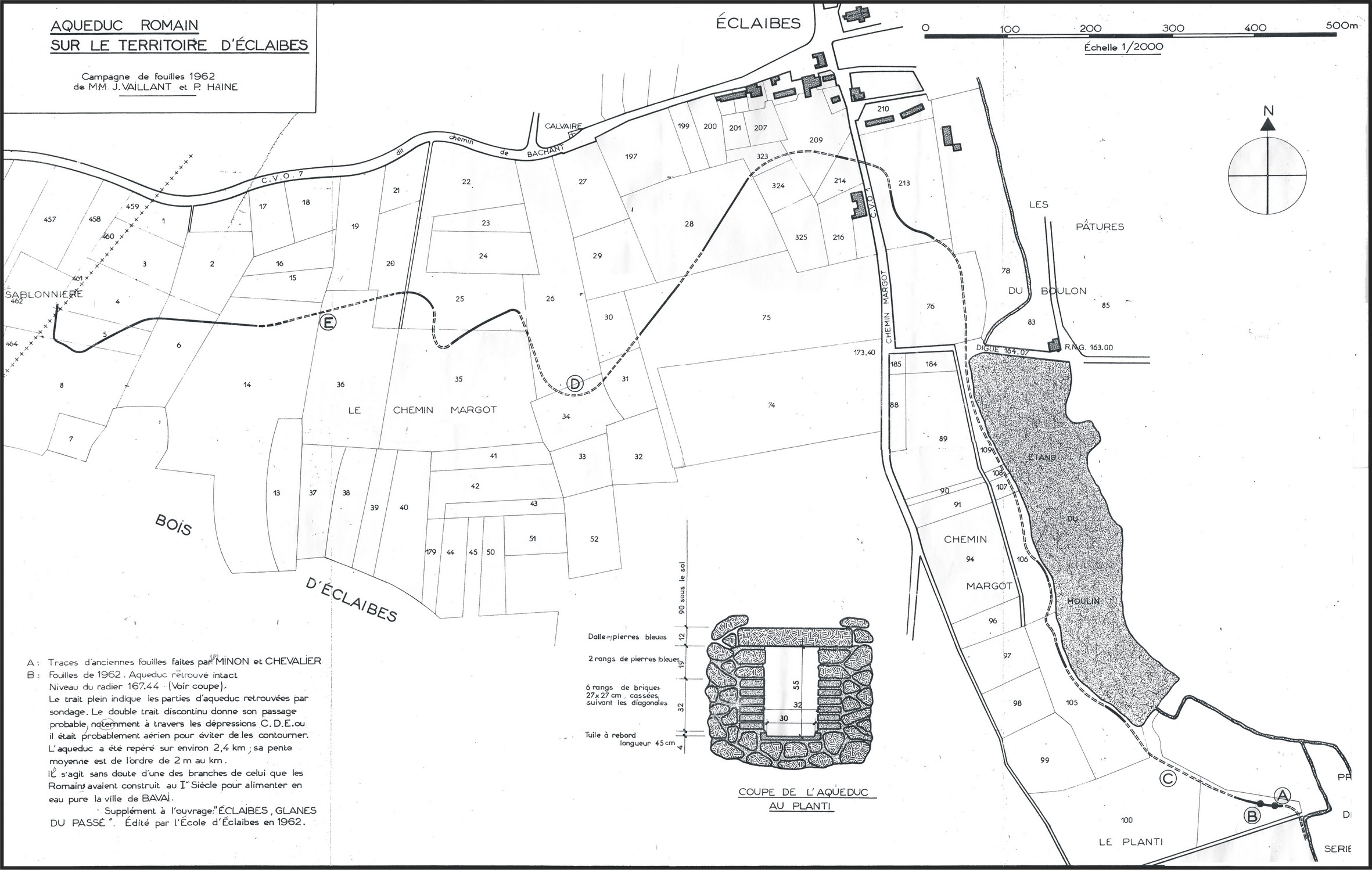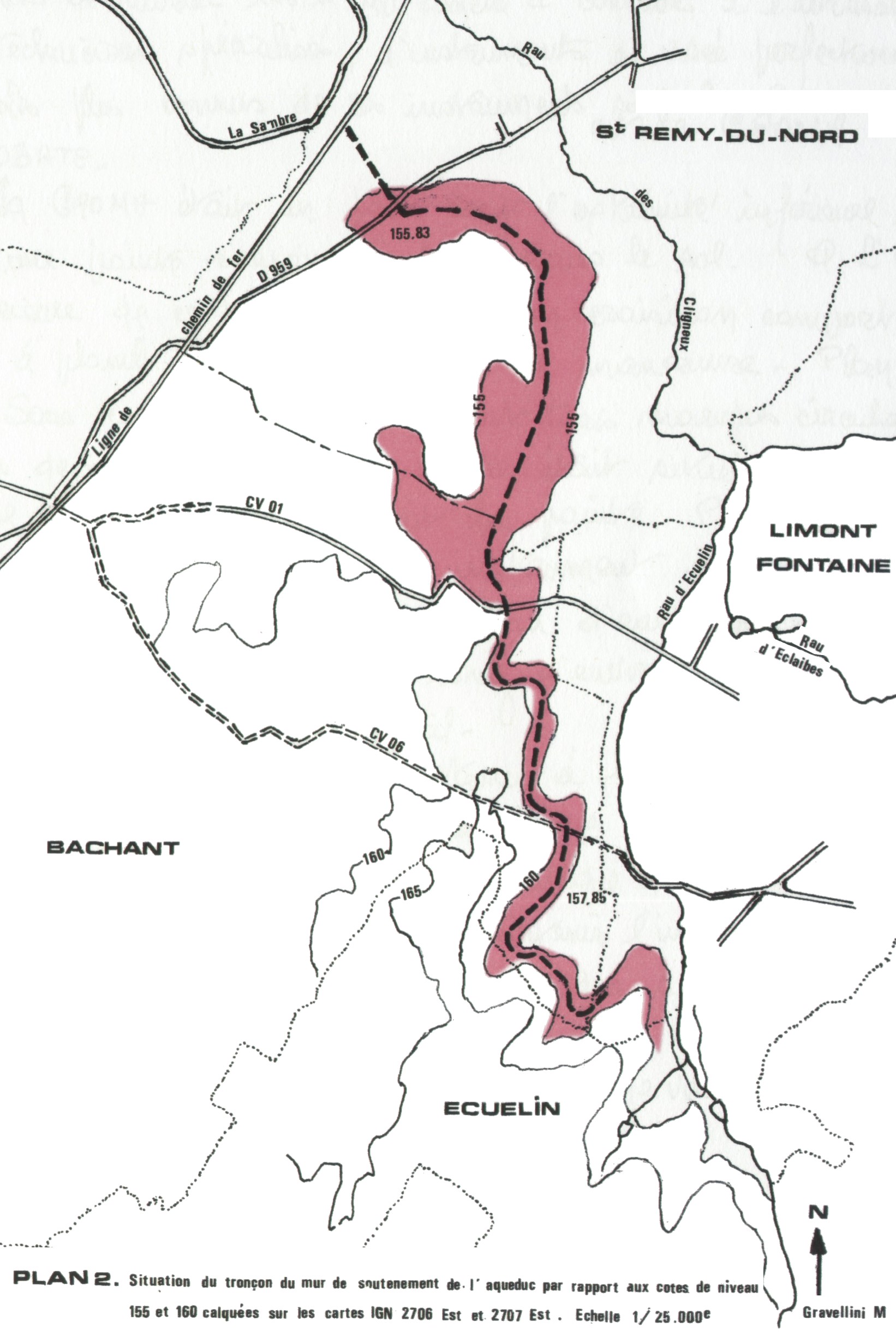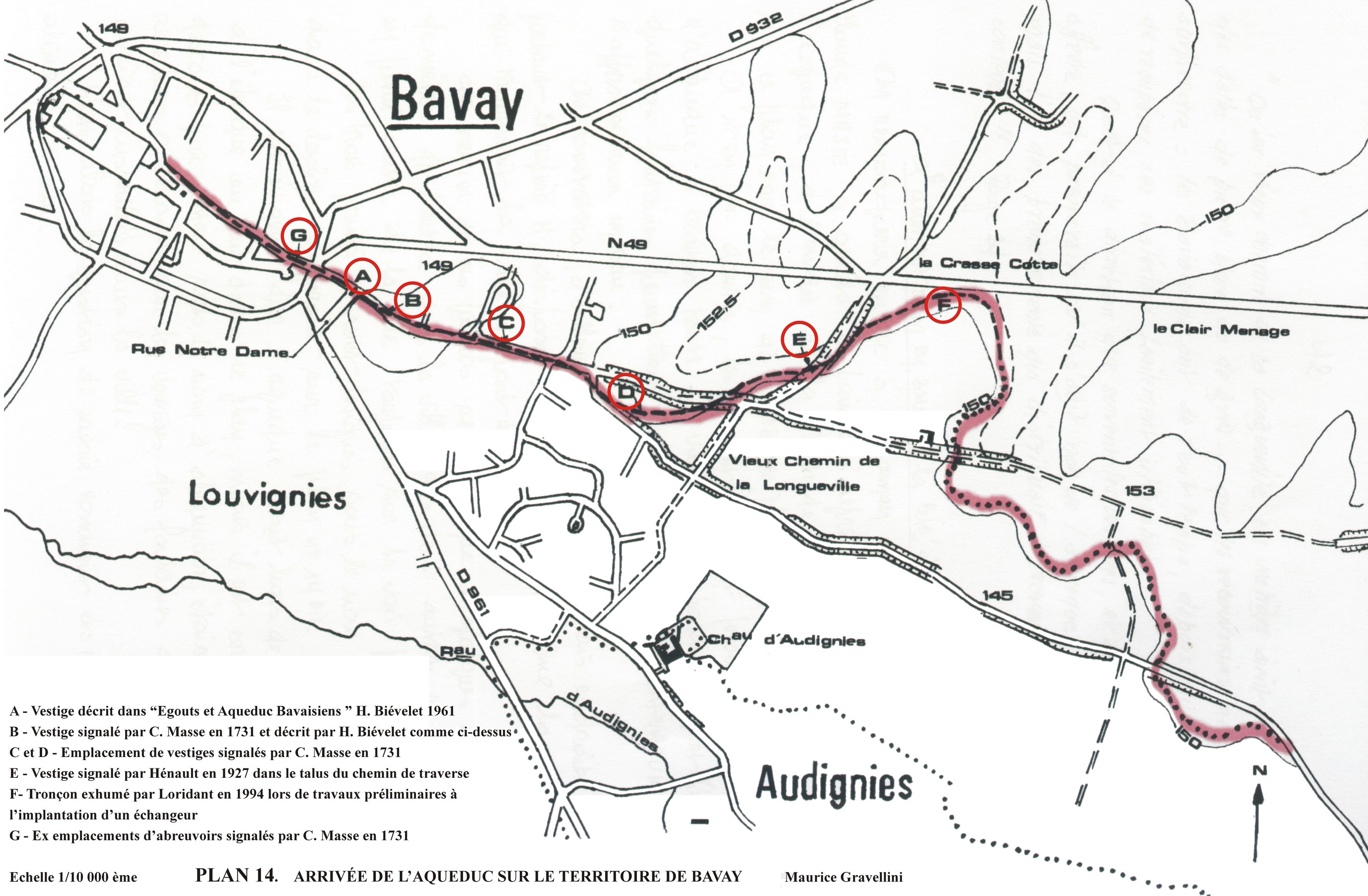 Plan N° 14, parcours de l'aqueduc, secteur de Bavay. Maurice Gravellini.