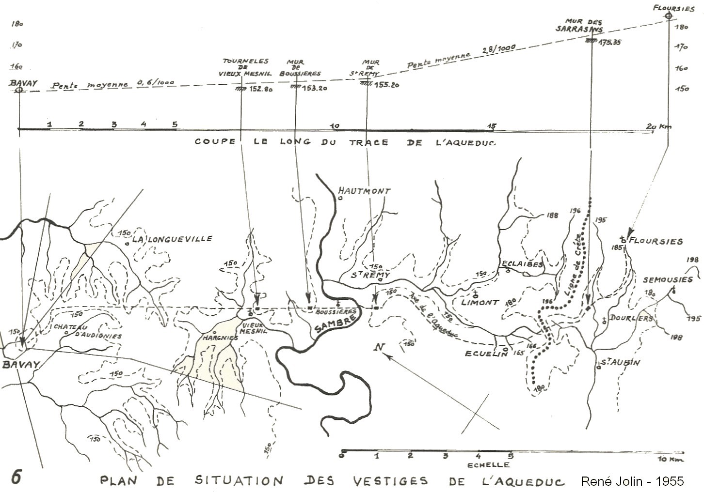 Parcours global et pentes de l'aqueduc par René Jolin.