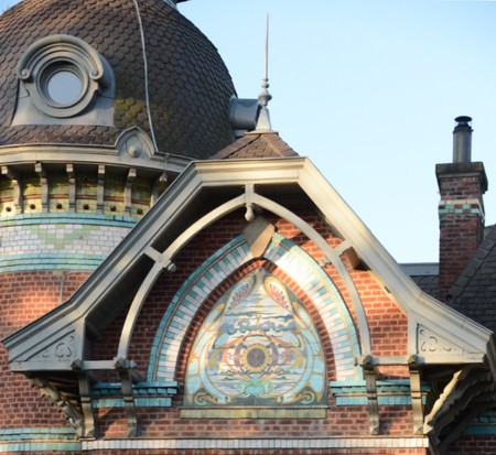 La Villa Evrard : La tradition orale attribue la construction de cette maison patronale à Henri Armbruster, architecte établi à Valenciennes (Nord) entre 1904 et 1906. Ci dessous, quelques détails de l'architecture du toit.