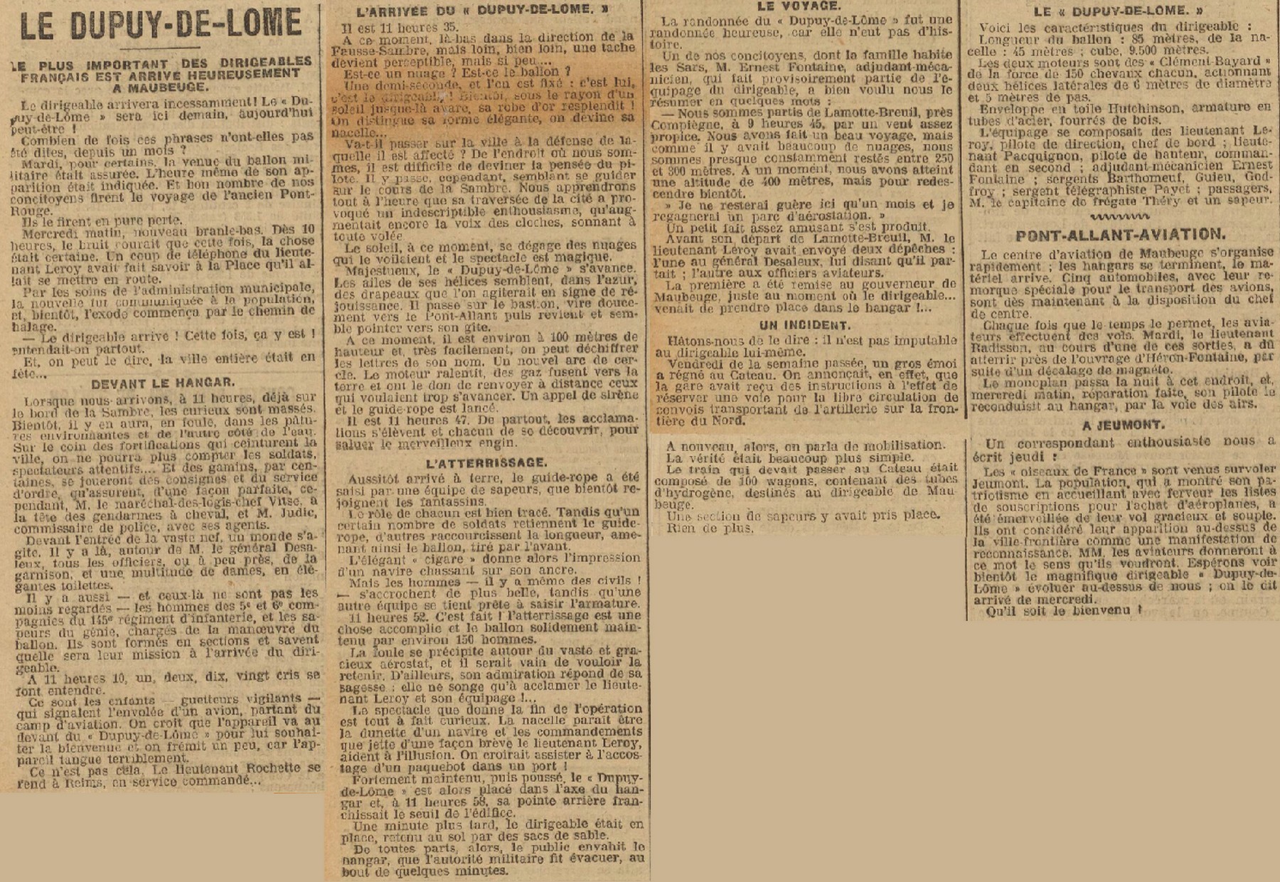 Le 10 août 1920, le dirigeable quitte Maubeuge et traverse la