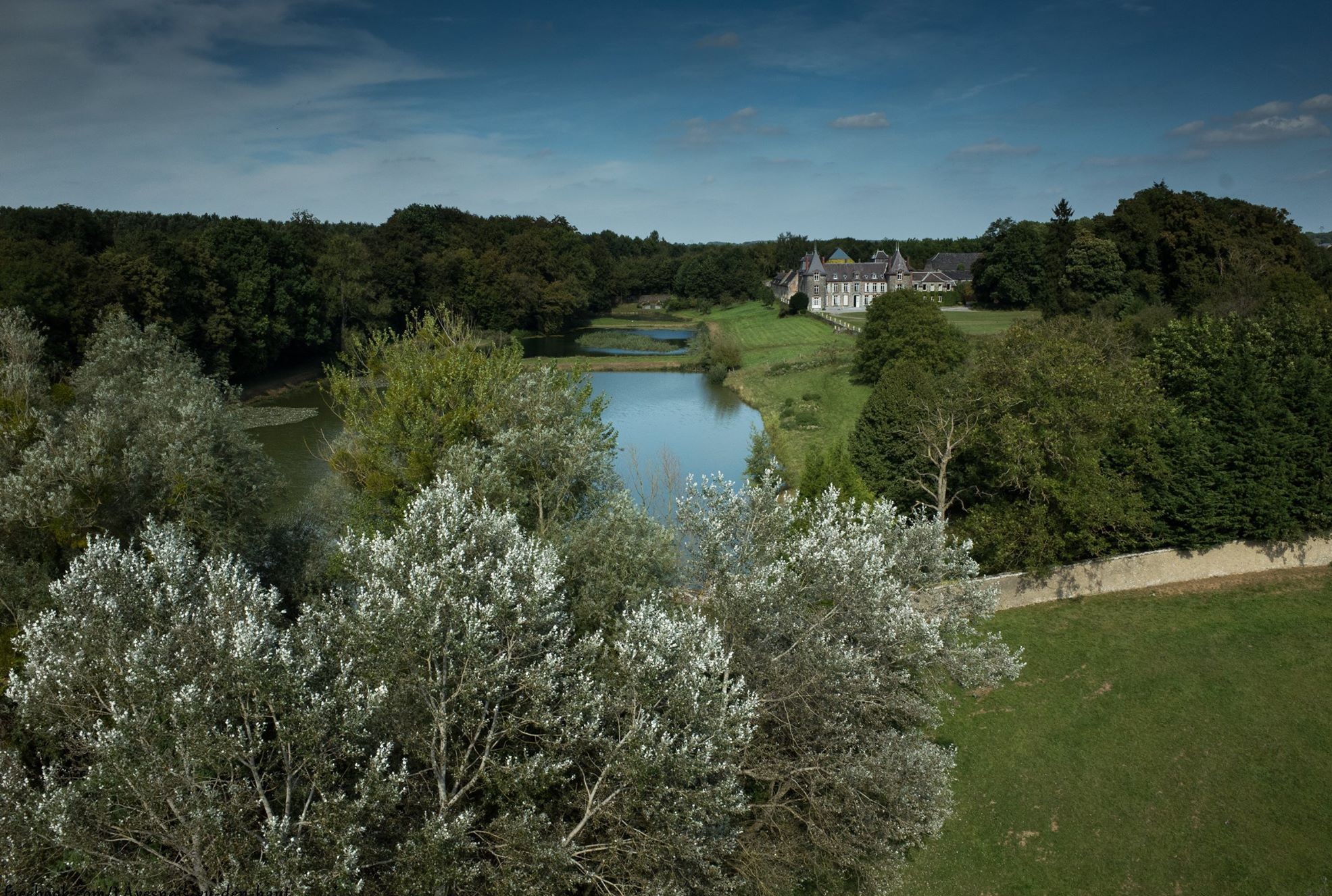 Le parc constitue un vaste ensemble paysager remarquable, avec trois étangs (à l'origine, des viviers) sur un hectare, une source au nord-est formalisée par une fontaine monumentale en pierre bleue avec exèdres, escalier et terrasse, datant vraisemblablement du milieu du 18e siècle. Les étangs alimentaient un moulin en contrebas qui existe toujours en amont de la rivière. On trouve également une glacière en pierre effondrée et deux petits ponts. Au sud, l'ancien jardin à la française a été remplacé par une pelouse à l'anglaise, probablement vers 1860 : cette partie est séparée des étangs par un mur de soubassement en pierre, surmonté de vases. La grande allée et l'allée de tilleuls ont été récemment reboisées.