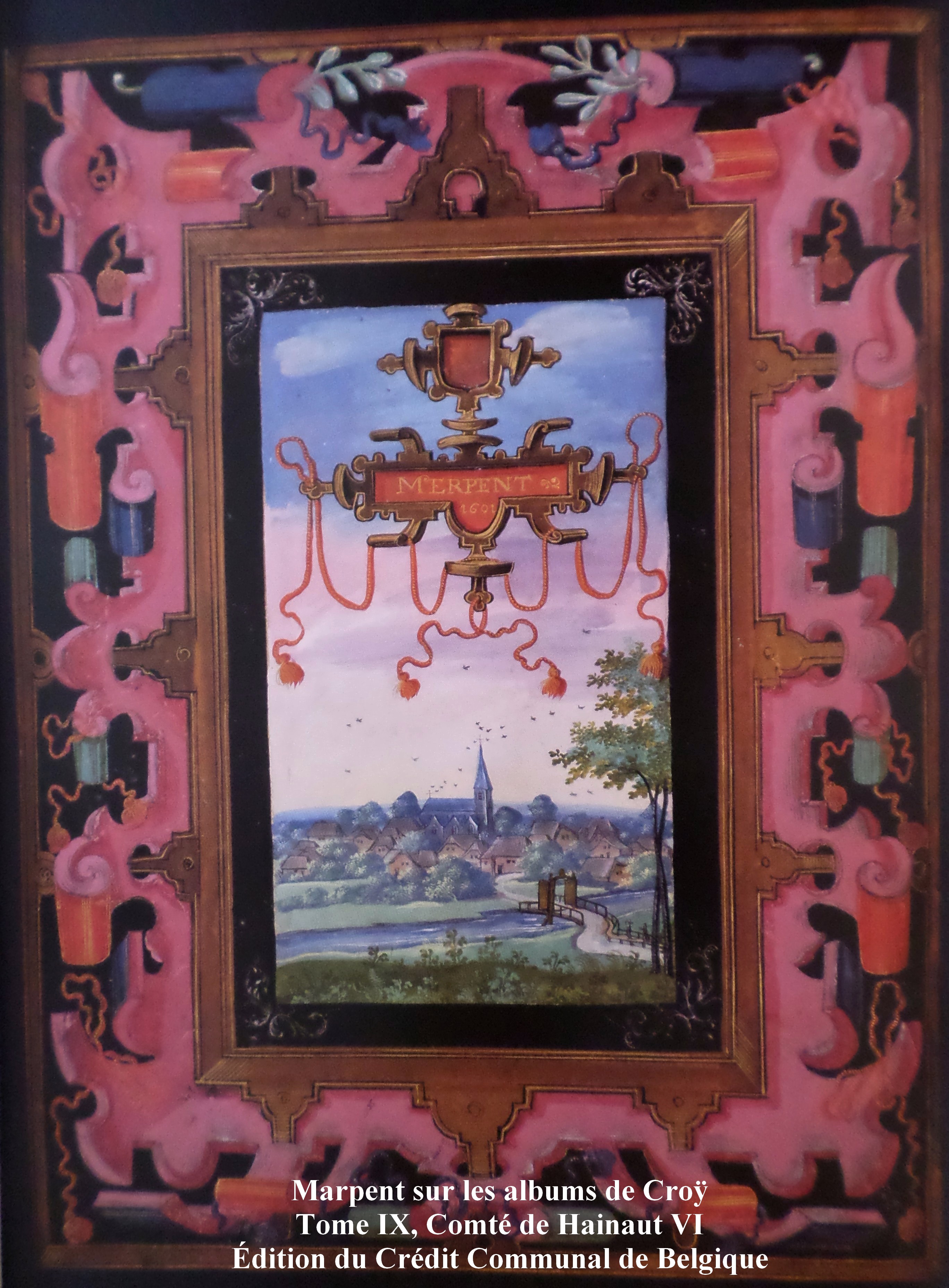 Marpent, noms anciens : Merchten: Chronique de Baldéric, Chapitre XVI. Marpynas, Chronique de Lobbes, VIII, 286. Marpen, 1133, Titre de Saint-aubert, Le Carp. Pr. II, 82. Marpent, 1140, Cartulaire de L'abbaye de Liessies. Marpent, 1340 , Trésor des chartes du Hainaut. Marpont, 1349, Pouillé de Cambrai Merpent en 1601 dans le tome IX des Albums de Croÿ. Marpain ou Marpent-sur-Sambre dans divers docs anciens.