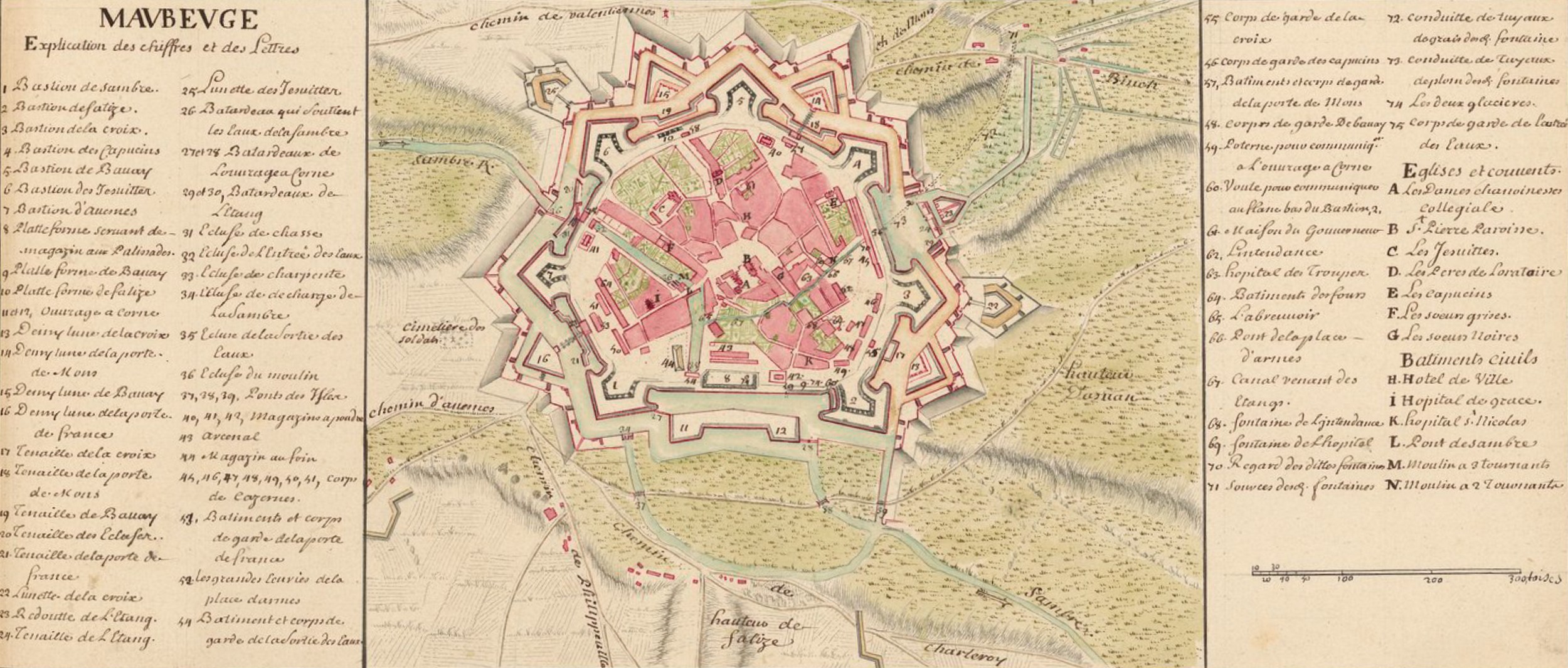 En 1680, Louis XIV, visitant les conquêtes que ses armes lui avaient assurées, vint à Maubeuge avec la reine. Le gouverneur et le magistrat reçurent LL. MM. à la porte de la ville et leur en présentèrent les clefs à genoux . Cette ville était alors beaucoup plus grande qu'aujourd'hui, mais ses murs étaient complètement délabrés par l'effet des sièges qu'elle avait subis. .....
