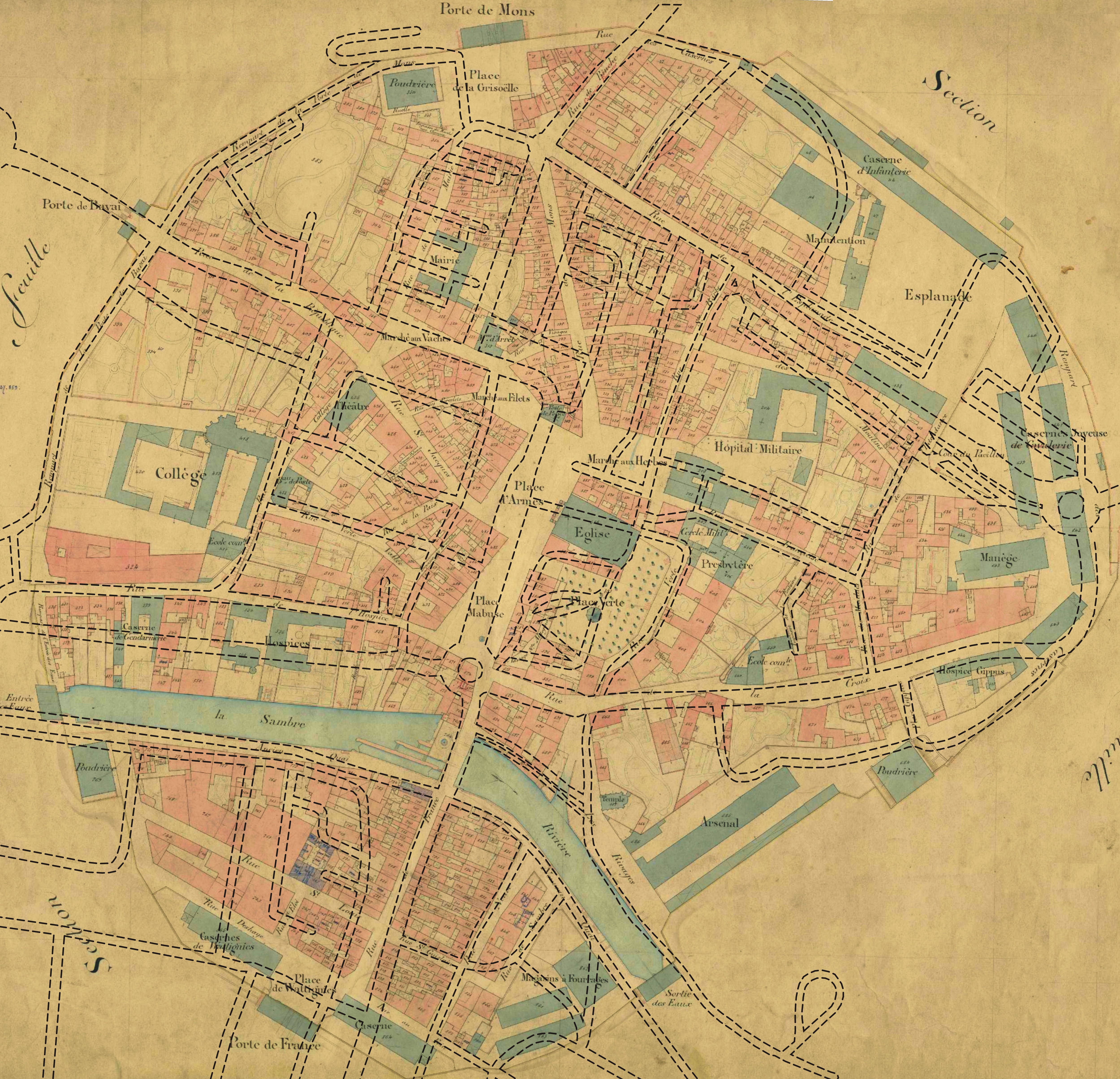 La configuration de Maubeuge ayant été totalement revue après la guerre, il était indispensable de poser des repères de façon à pouvoir s'y retrouver. Les superpositions des rues actuelles sur le cadastre et la