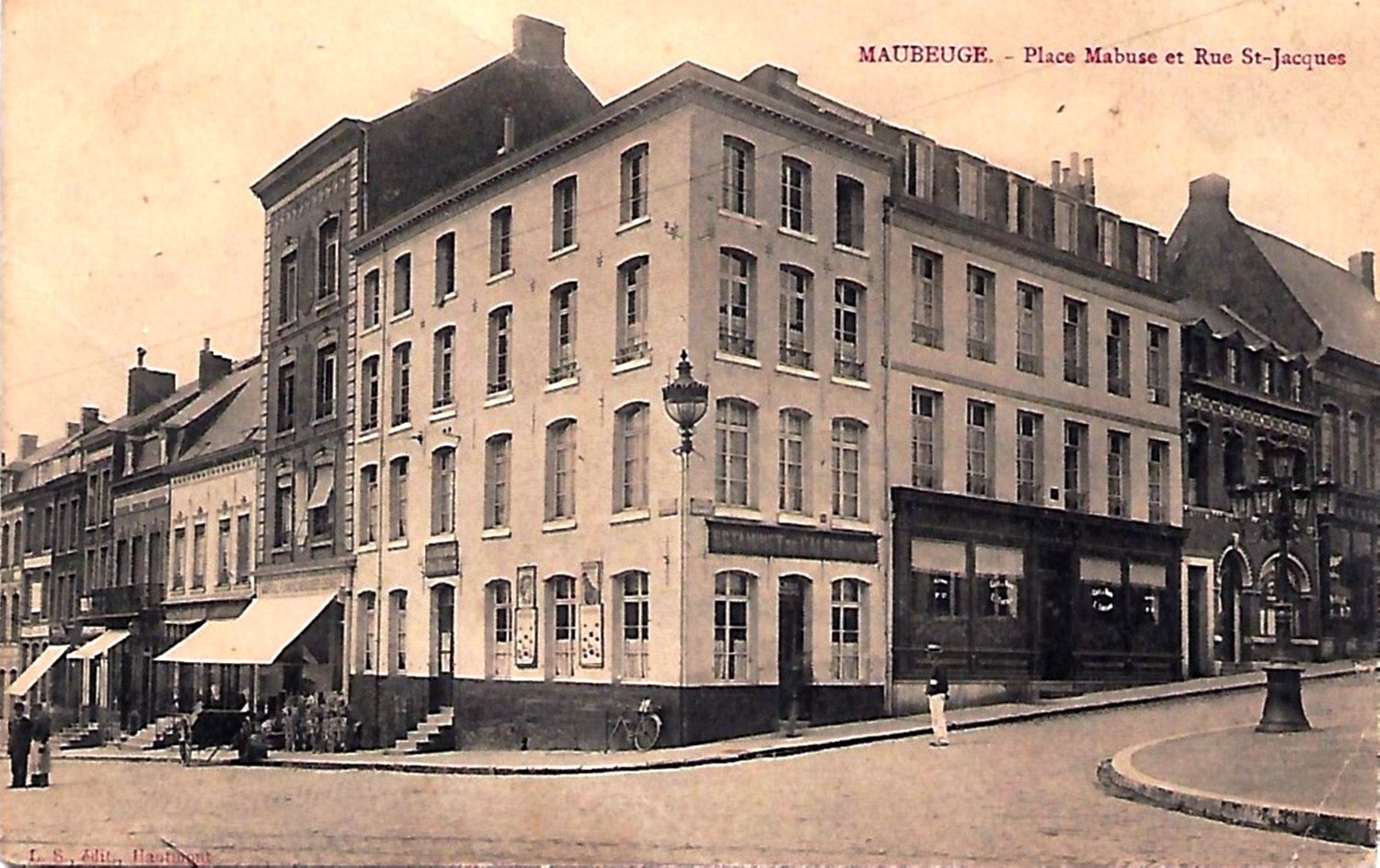 Même endroit après 1920. L'immeuble (4) qui faisait l'angle avec la place Mabuse a été totalement redessiné. On remarque également que l'hôtel qui était en fond d'image