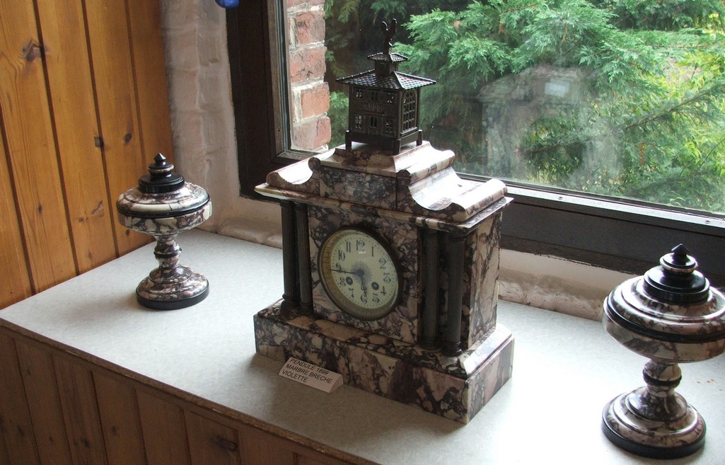 Marbre noir des carrières de Mazy (Belgique) Très employé dans la pendule au XIXe siècle.