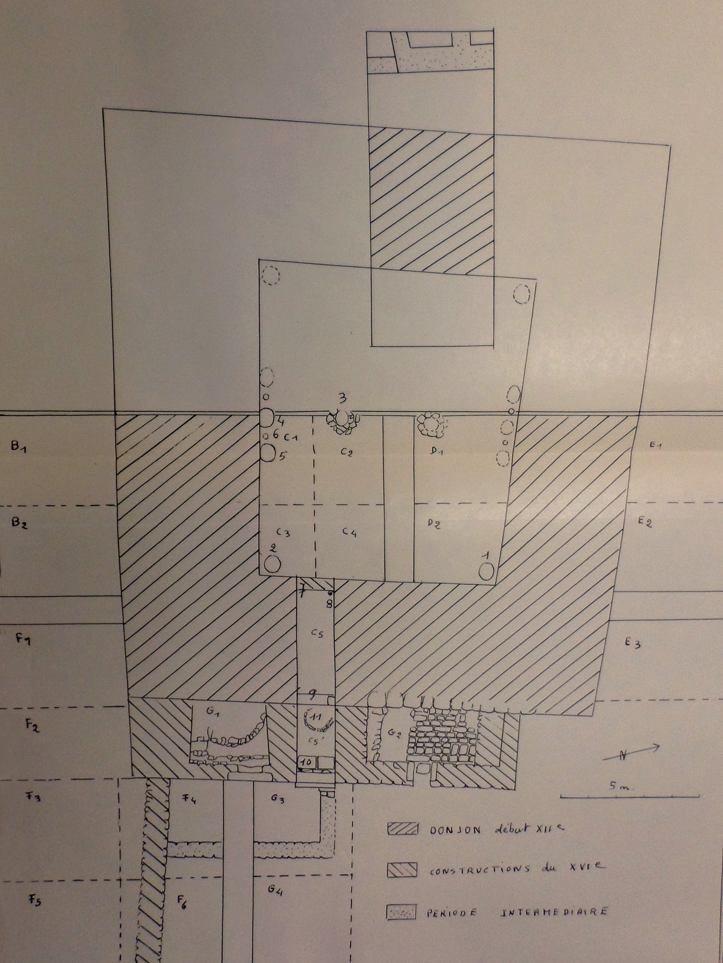 Le donjon reconstruit se voit doté d'un mur de refend, large de 2 m, supplantant les piliers de bois. Il est, cette fois, couvert de tuiles plates à tenon. La stratigraphie non bouleversée démontre l'utilisation du rez-de-chaussée aveugle comme dépotoir durant plusieurs siècles. Le matériel céramique, très important, est donc parfaitement daté et continu, s'étendant du XIe au XVIe siècles.