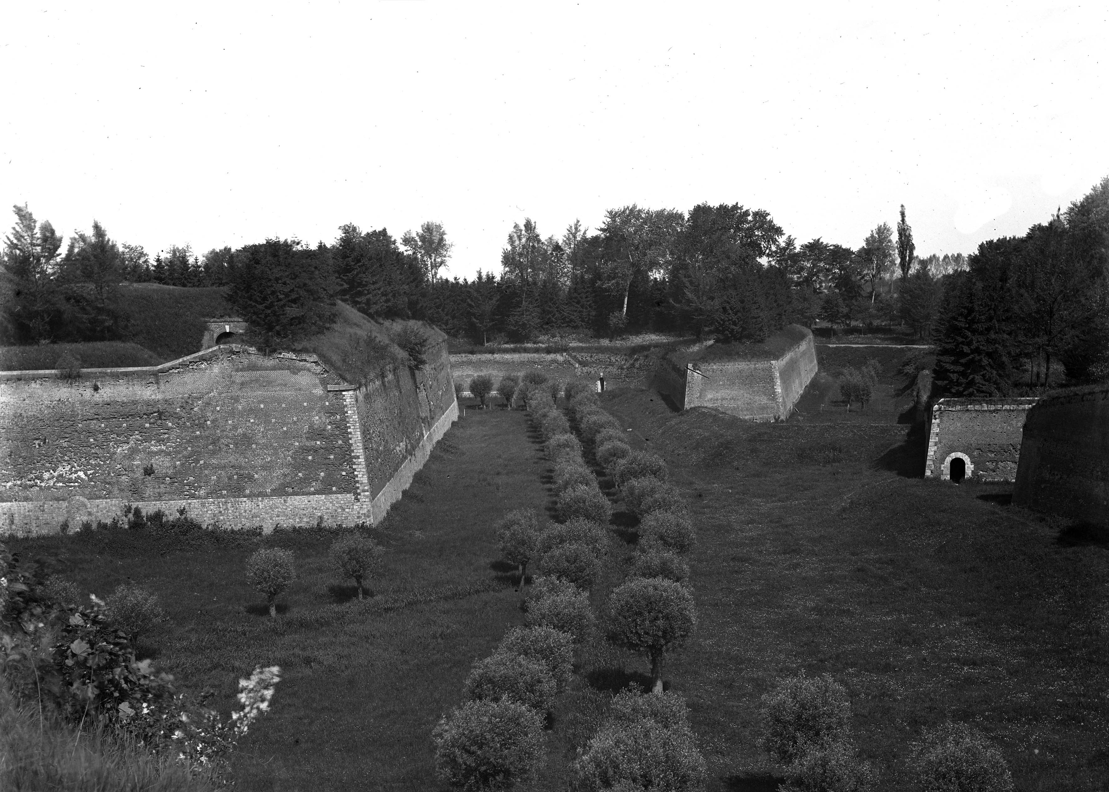 2>... La construction de fortifications sérieuses autour de la ville, réduisit l’importance du château au point de vue de la défense et rendit disponibles les eaux qu’il utilisait. Celles-ci reçurent un nouvel emploi, car l’on songea tout de suite à les faire courir autour des remparts où on les rassemblait pour former l’étang Saint-Martin, l’étang du fer à cheval et l’étang du Gard, ce dernier le plus important. Ces étangs étaient mal placés, aussi furent-ils remplacés par trois étangs créés successivement près du faubourg Fauroeulx en élevant des barrages à des endroits appropriés. Les étangs nouveaux se nommèrent : Etang du Mayeur, Etang Neuf (actuellement Etang du pont rouge) et Etang d’Aulnoit (n’existe plus). L’élévation des eaux y était obtenue par le rehaussement de la chaussée de Landrecies dont on peut encore voir les parties maçonnées, formant digue, non loin de la porte actuelle dite de Landrecies. Quant aux eaux en excédent des besoins, une vanne casematée située dans le chemin couvert de la place à l’Ouest, en permet encore l’écoulement par une conduite souterraine en maçonnerie longue de deux à trois cents mètres.