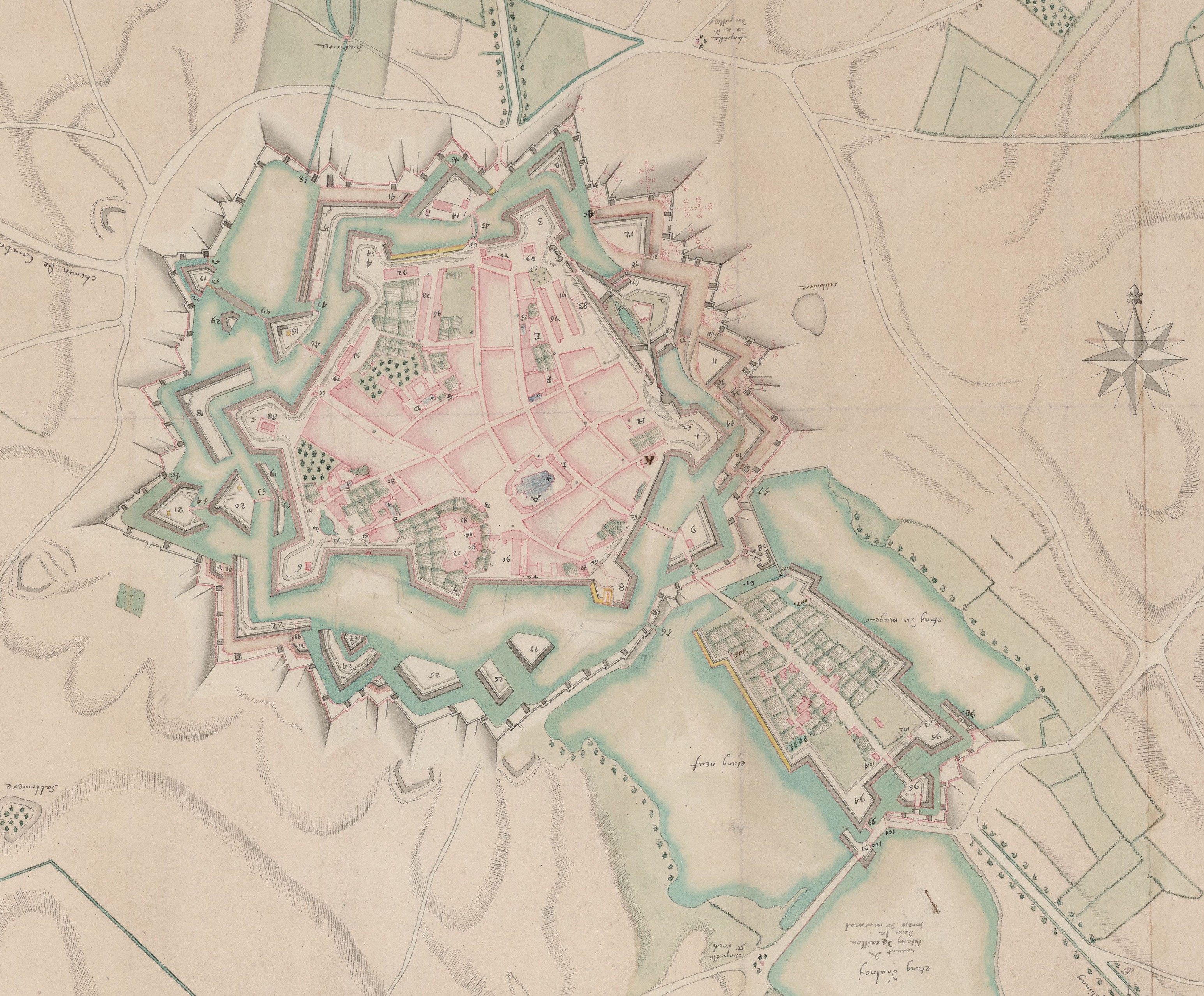 La modernisation des fortifications par Charles Quint va occasionner une série de transformations importantes de l’enceinte urbaine : l’enceinte médiévale est intégrée dans les nouveaux remparts qui sont dressés à partir de 1534 sur