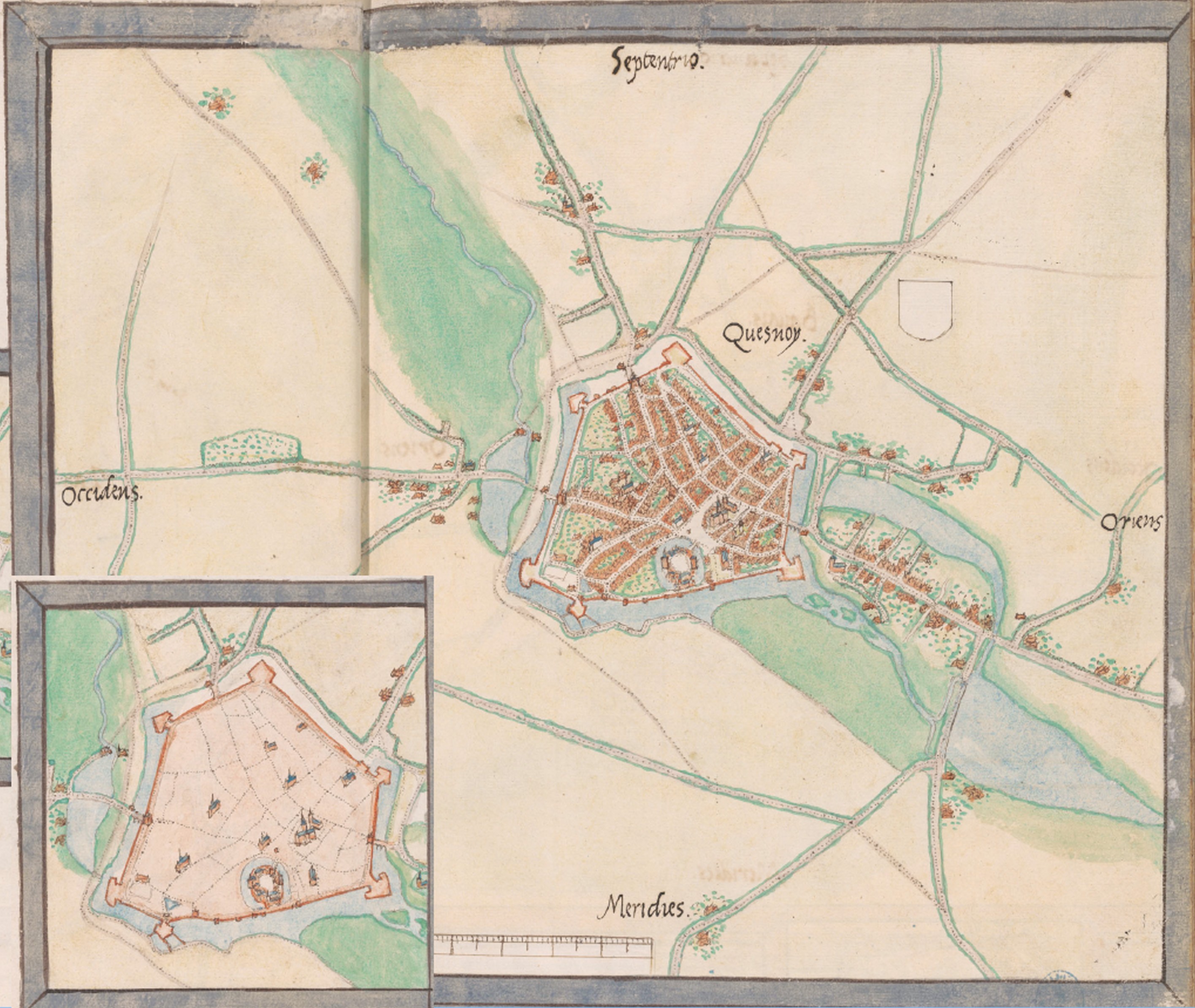 (33) Ms. 3746, f° 129 d’un carnet de dessins démembré qui remonte à la fin du xvie siècle, voir Maurits Vandecasteele, « Les fortifications du Quesnoy et d’Avesnes vers 1600 : impressions figuratives d’un voyageur anonyme », dans Architectura 2, vol. 31, 2001, p. 133-144. On ne s’attachera pas au contenu de l’article, trop entaché d’erreurs.
