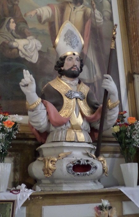 Reliquaire ayant la forme d'un bras, dont l'avant-bras est en argent et la main en vermeil, renfermant des os de St-Hilaire donné à l'église, en 1518, par Charles de Croy, prince de Chimai, et son épouse Louise d'Albret.