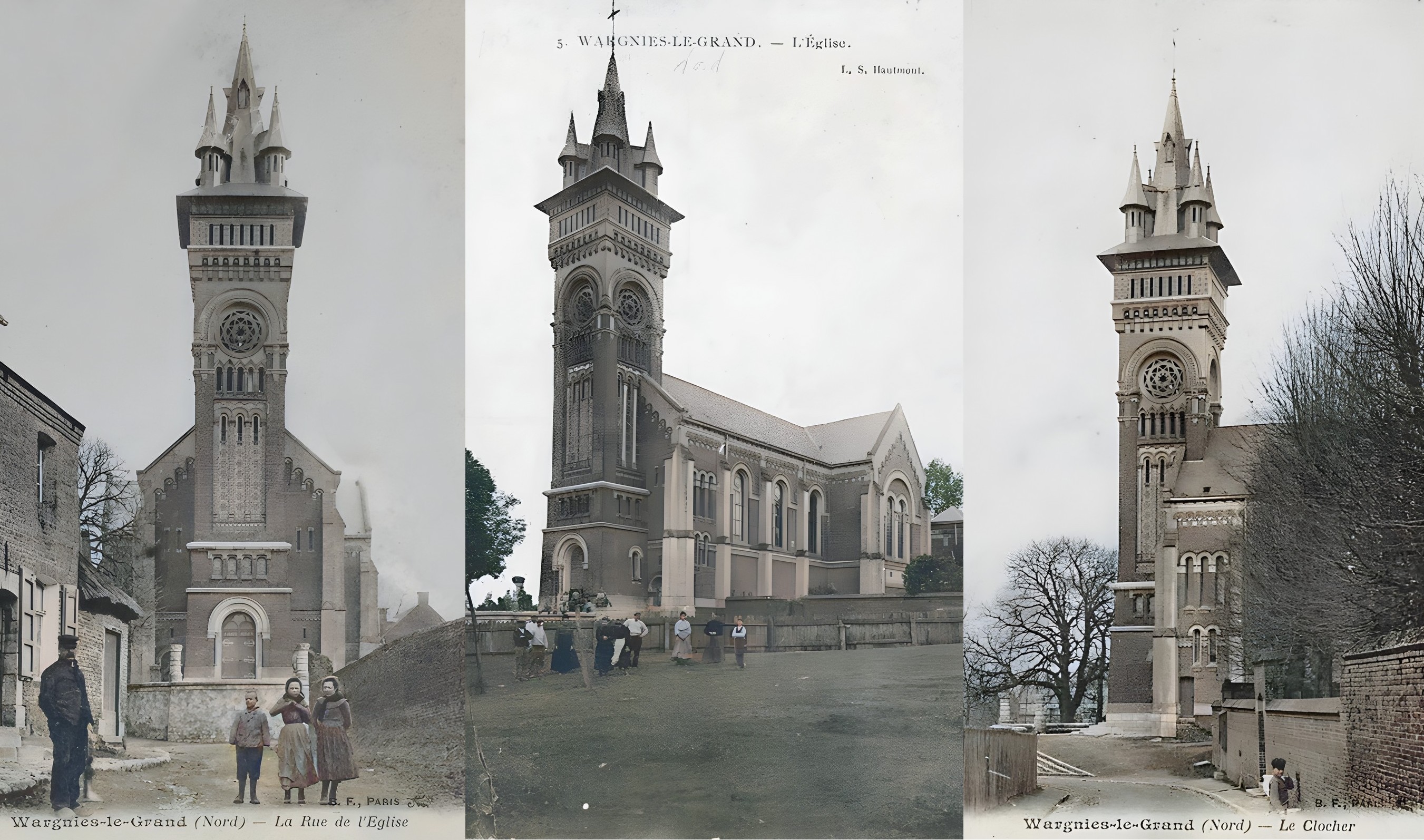 25 mars 1892 : premier projet de construction d’une nouvelle église implantée en face de l’ancienne, projet de l’architecte Fievet qui renonce à la direction des travaux pour raison de santé en avril et qui est remplacé en mai par Dutouquet, architecte à Valenciennes.